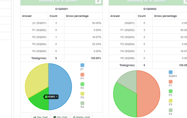 | Description | Hi, On statictics page the system shows % (percentage) sign wronly. Please check attached picture. Normally it should show only 1: 100 but it shows as 1: 100%. The number 100 is count of the answers but it shows like it is percentage. | ||||