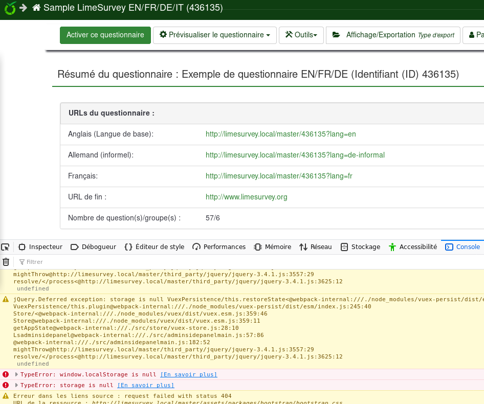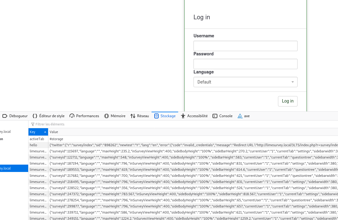 Hi Frederic, it's not for you, more for dev team :) And about your issue «Maybe find a way to have working LimeSurvey admin without any localStorage …» |