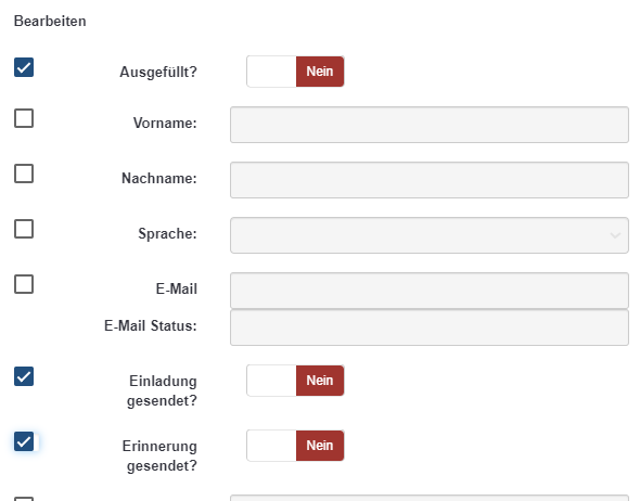| Description | I was just about to edit a token and wondered about "completed", "invitation sent" and "reminder sent" being pre-filled with YES (ja), though I had previously re-set those fields to NO using the batch editing tool. | ||||