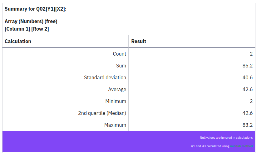 So, when the dropdown appears, evertything is working ok, right? Each cell is treated as a single choice question (1-10). When the dropdown doesn't show up, should we make each cell of the numeric array to be trated (and its stats shown) as a single numeric input? |