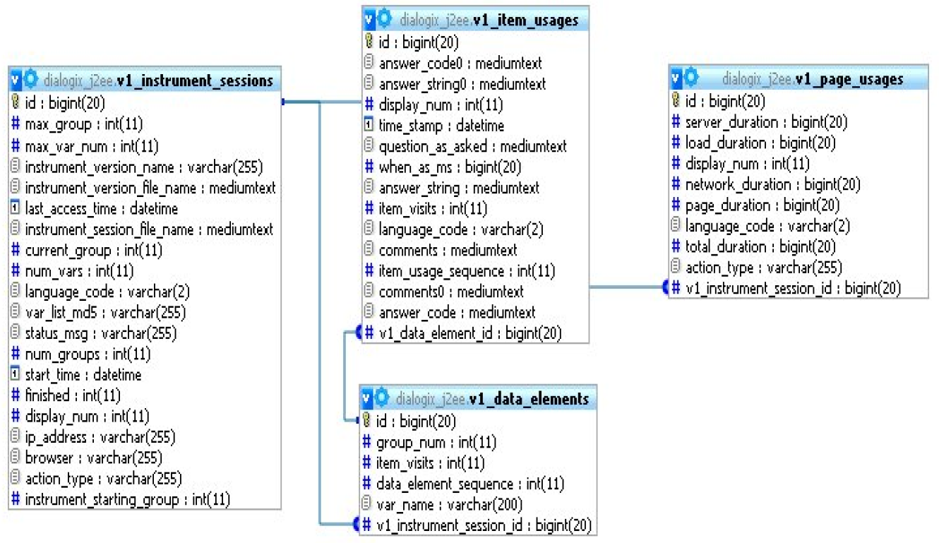 (B) On activation, always create survey_SID table with the core columns (C)if $DatabaseStyle is horizontal or both, add SGQA columns (D) if $DatabaseStyle is vertical-EAV or both, create tables similar to that described in LS-EAV-DataModel.png attachment. LS doesn't need as many columns, but in general, here is the idea. We can change the names, but this data model is known to work: (E) Modify EM data saving functions to save into either or both of the $DatabaseStyle. With each page flip, (F) Modify database export to transpose the data_elements table to horizontal format for export of SPSS, R, etc. data (G) Optionally add performance monitoring reports that show how survey performance changes with load or time. |