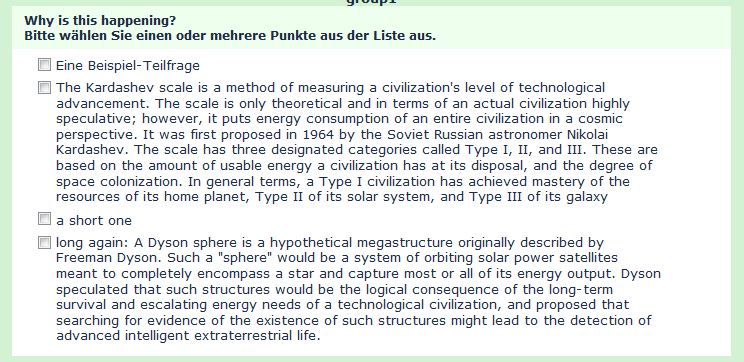 | Description | When using a question with multi-line answers, the text is not left-aligned. This makes it harder to read. (see attached Screenshot) | ||||