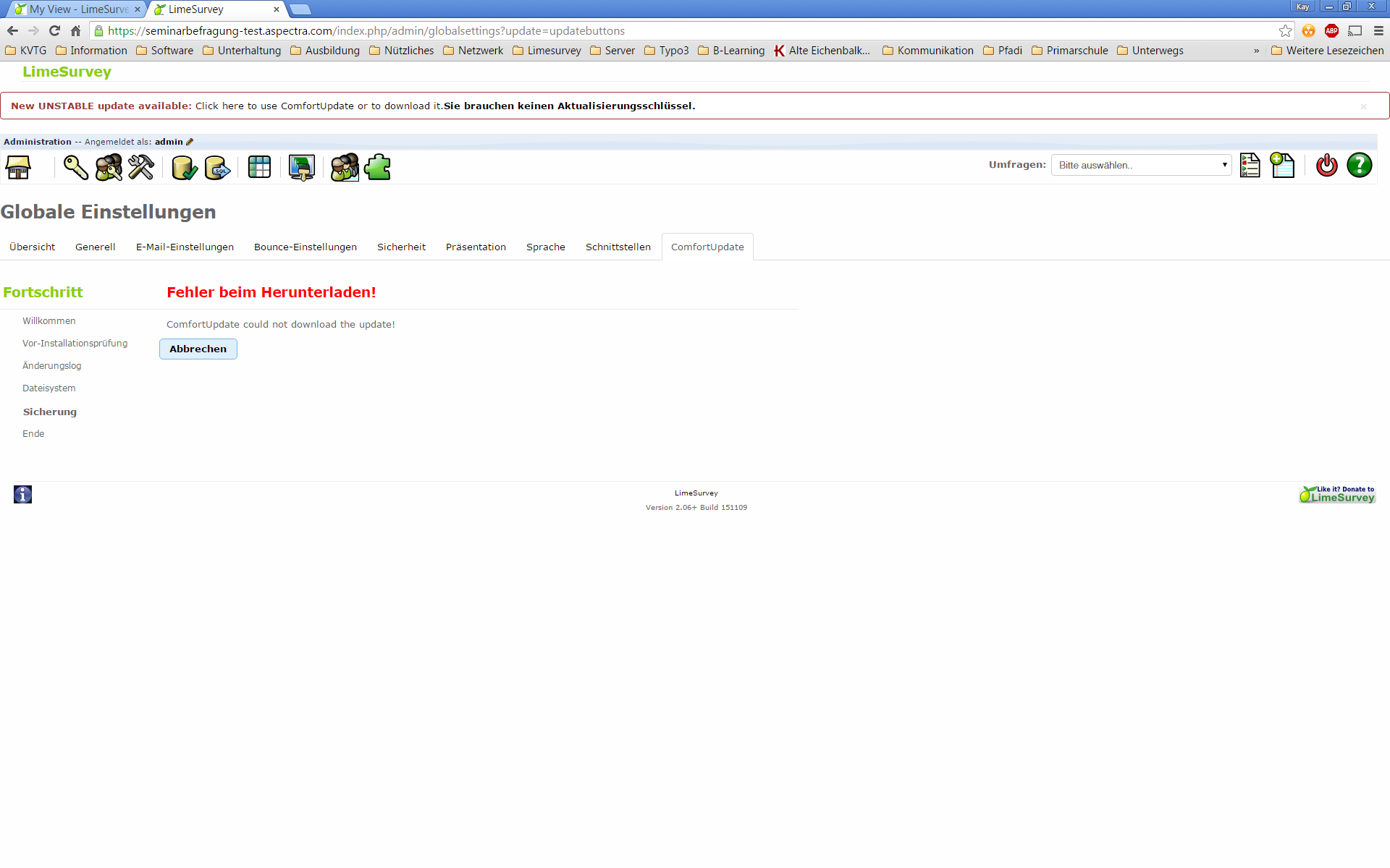 | Steps To Reproduce | Set up Limesurvey behinde proxy server, do a comfort update.... | ||||