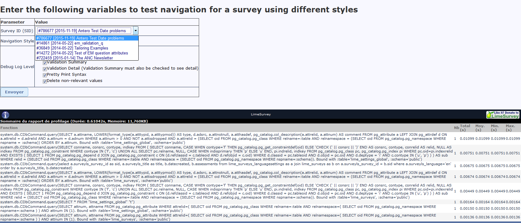 | Description | in a survey, the EM menu allows you perform a test of survey. the drop down list display only survey in English language. | ||||