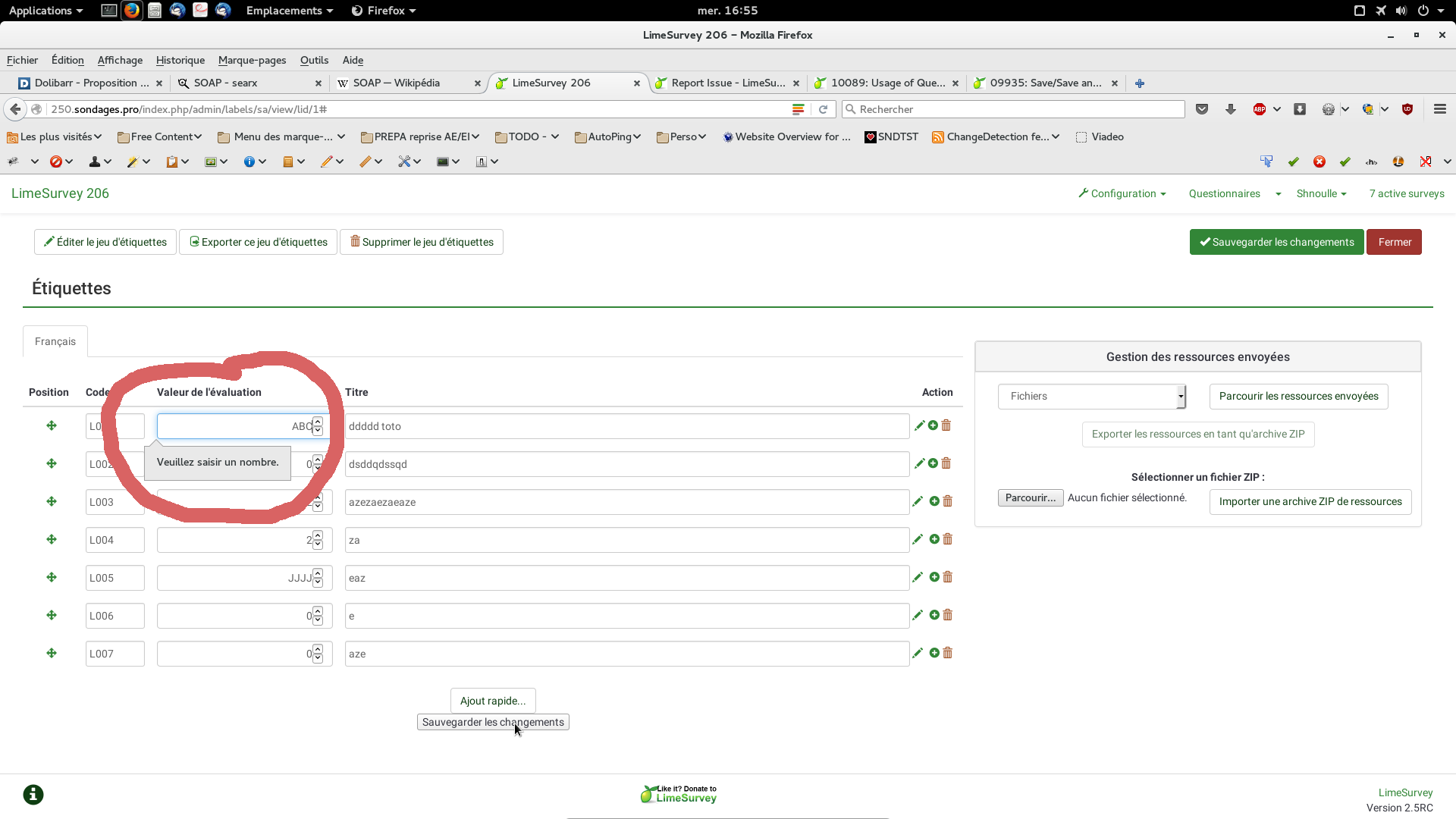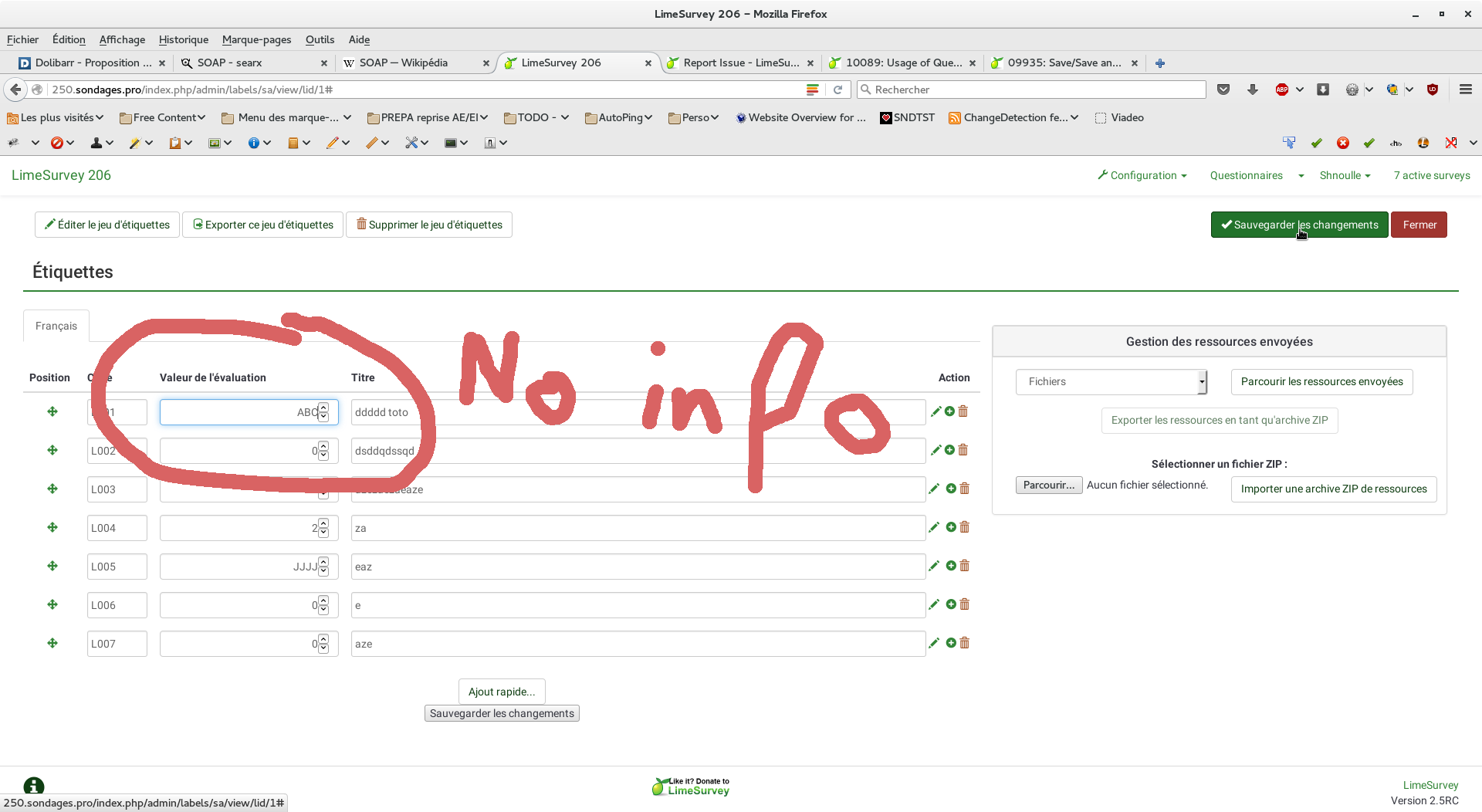 Changeset attached | => LimeSurvey 2.5 dec60205 |