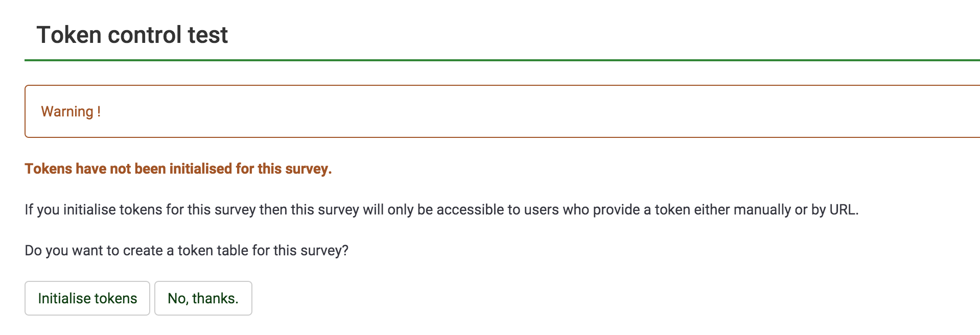 | Description | Within Lime2.5RC6 I cannot initialize a token table. I've tried on Postgres and Mysql. Clicking Initialize refreshes the same page but doesn't carry out the action, might be a simple fix | ||||