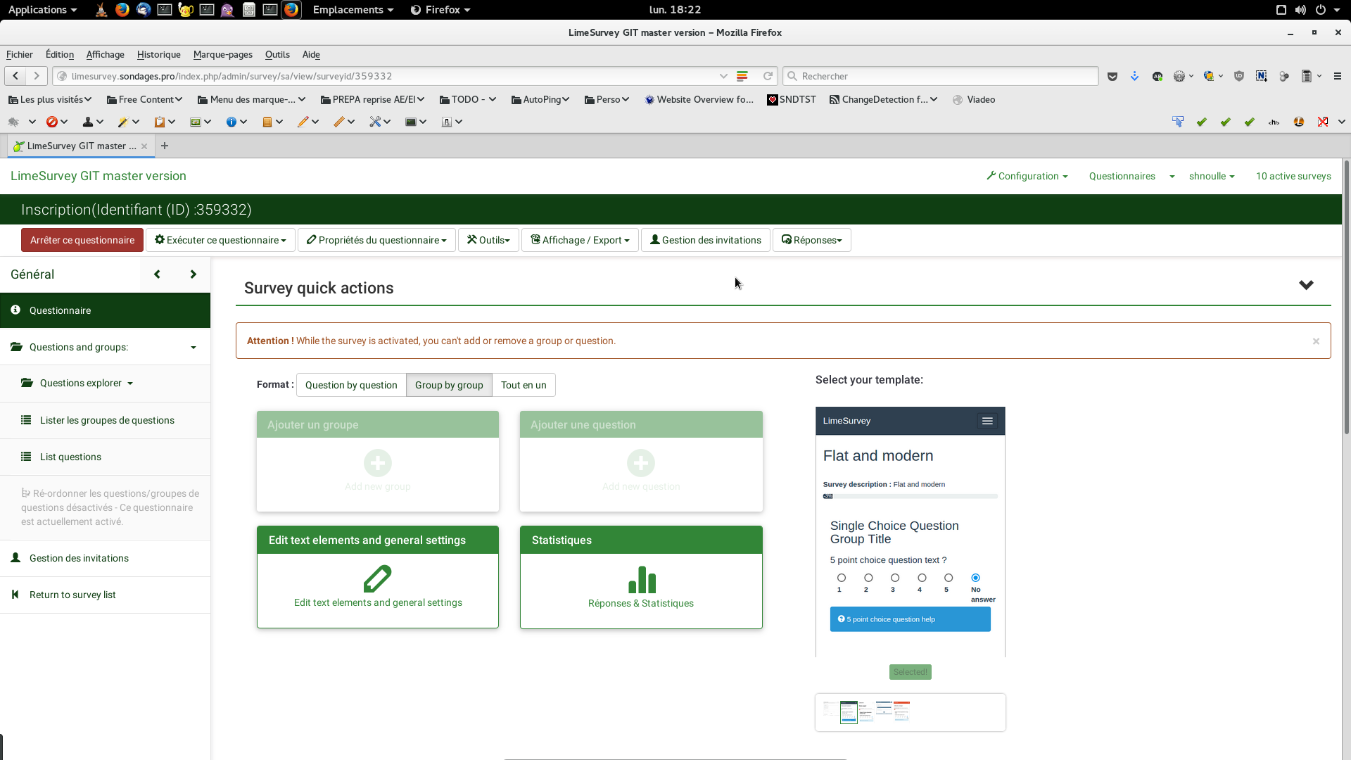 Not sure for the best place/menu system. But think must nbe reworked. ANd some part are always at same place (for example : edit group/edit question : same place for add a new group/new question etc ...) | ||||
