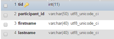 While at the participants table the fields are now using varchar(150) this got lost for created token tables, see attached screenshot. There firstname and lastname are defined as varchar(40). Further incompatibilities: