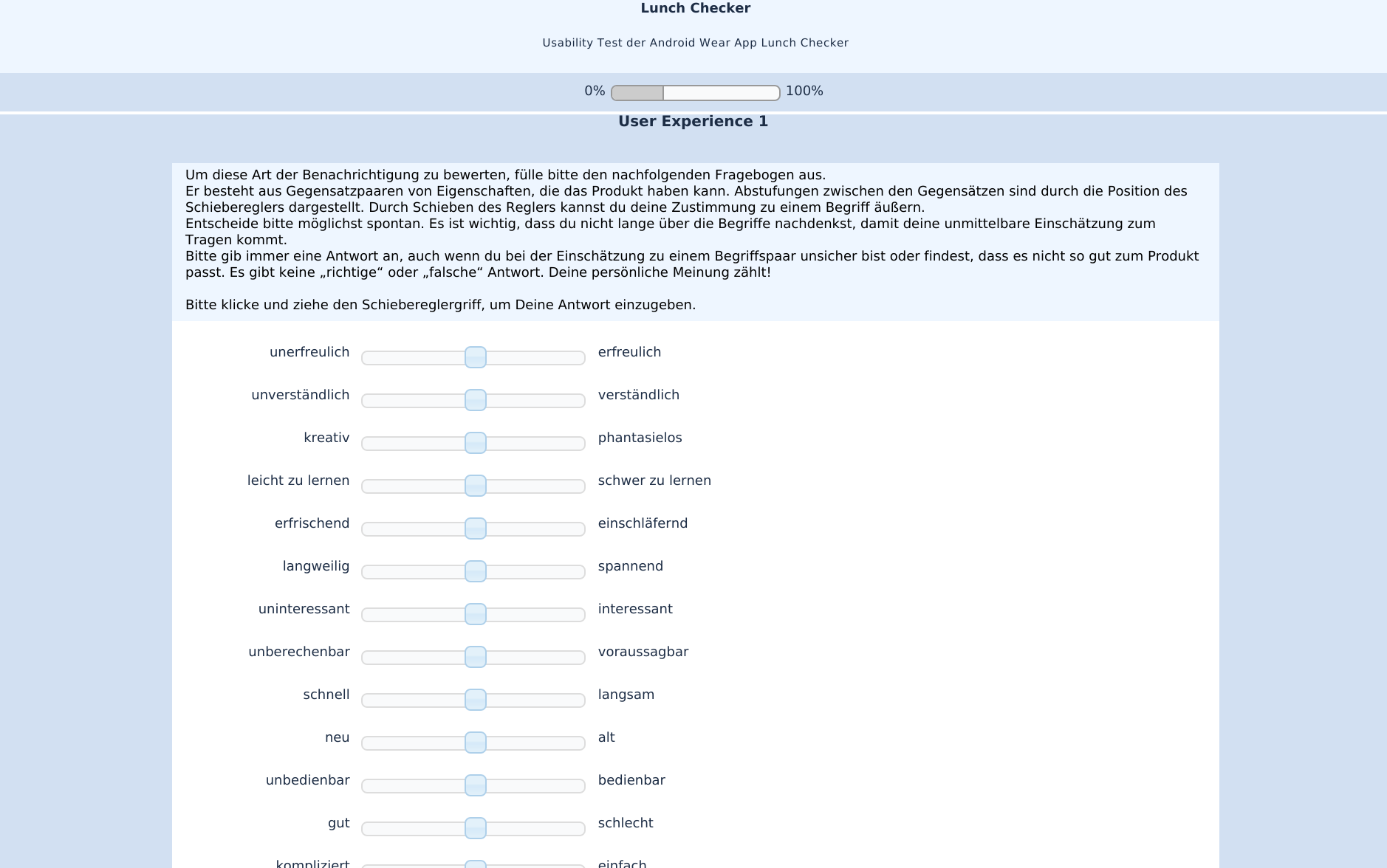 Setting "Slider starts at middle position" should initially place the handle in the middle but NOT record any data. Setting "Slider initial value" should initially place the handle in the assigned position AND record that in the data. |