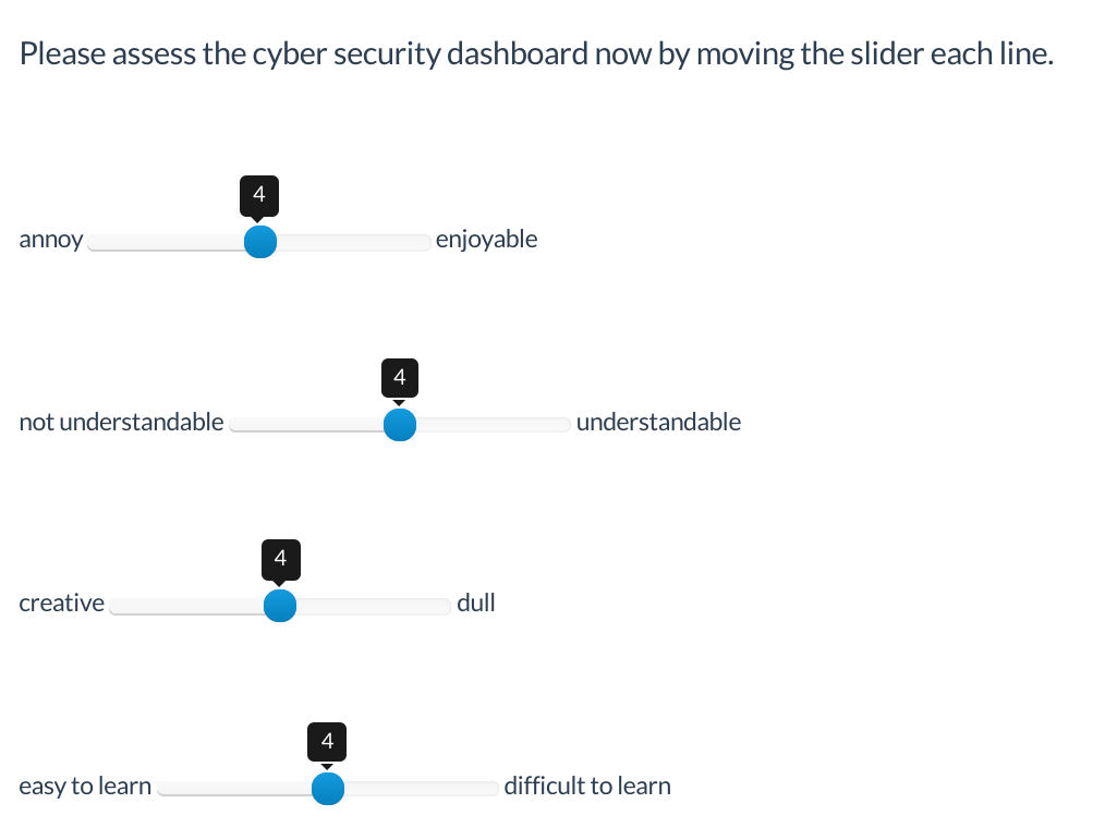 So '|unerfreulich|erfreulich' as sub-question-text should lead to the first slider in the screenshot, when the separator is set to '|' Feel free to use my survey to see how the HTML looked generated: https://limesurvey205.phynformatik.de/index.php/287186/lang-de-informal (Just use any numerical value for the first question) |