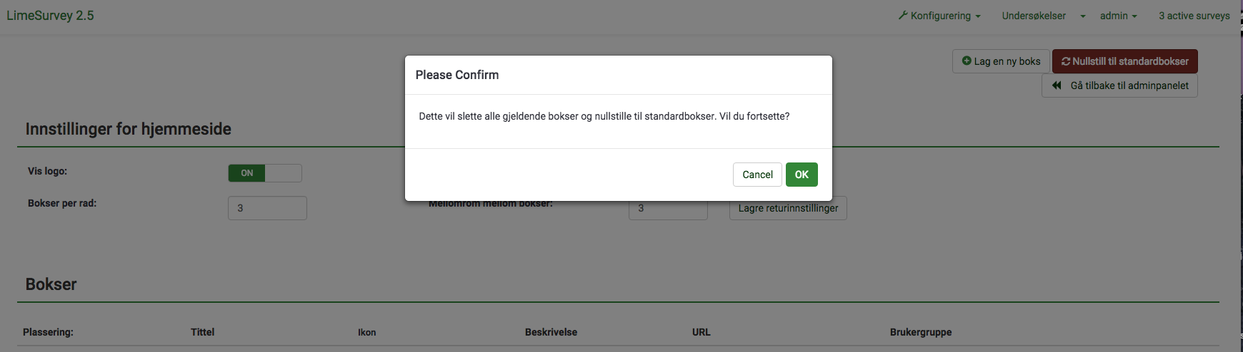 | Description | When resetting boxes to default values a popup message is not fulle translated. Missing strings are Cancel - Please confirm | ||||