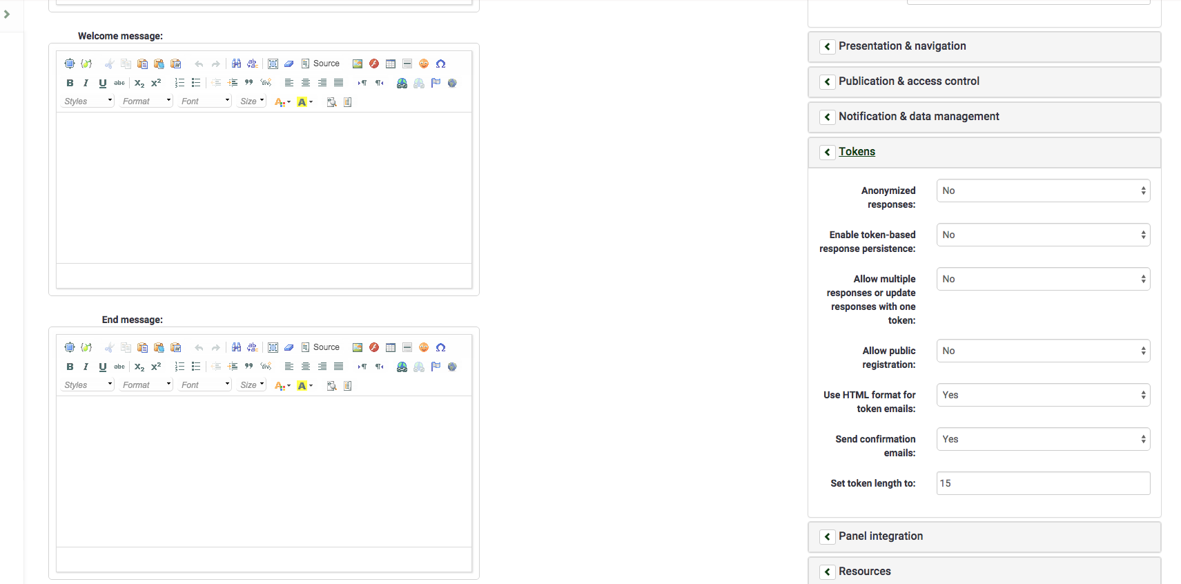 Hm, after rethinking I keen on my last statement: move Anonymized responses, Allow public registration from the Tokens menu and into the Publication & access control menu. I feel this is quite logical. What do you say? |