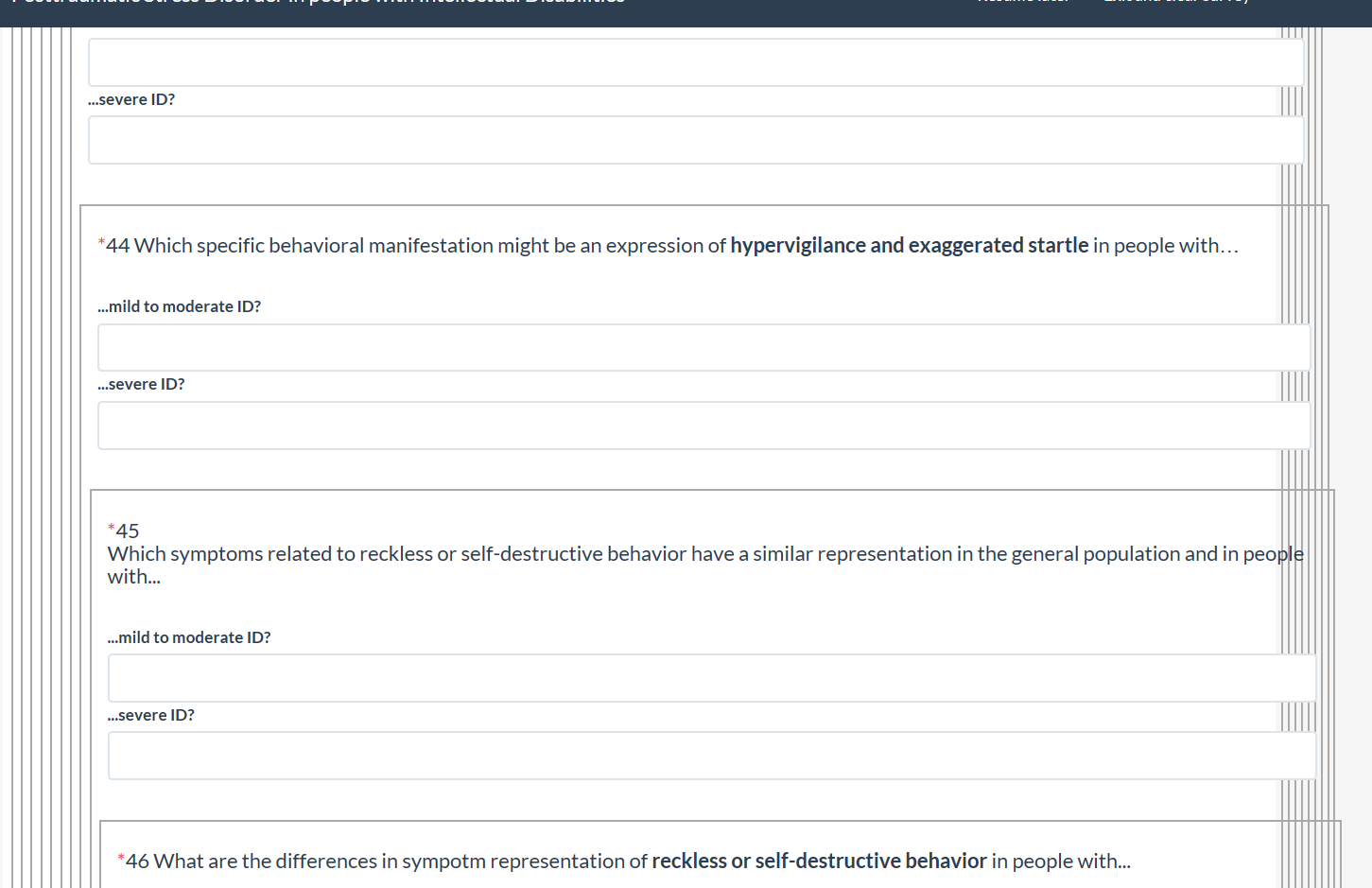 | Description | When opening the survey, there seems to be a problem with the graphic representation: the questions are framed with grey lines and further down the lines start to intertwine. | ||||