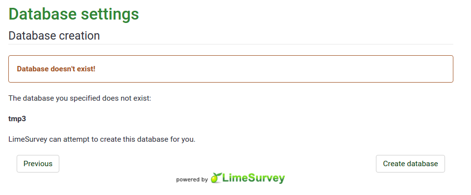| Steps To Reproduce | Install with db that does not exist. | ||||