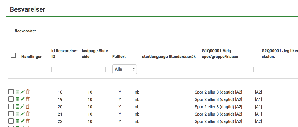 | Description | There are a few double labels in the columns when browsing responses. E.g. id besvarelseid, lastpage Siste side and startlanguage Standardspråk. See screenshot. | ||||