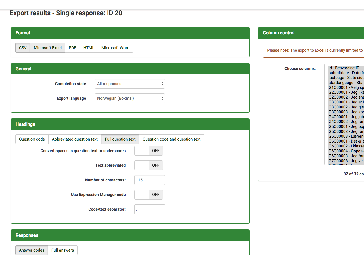 | Description | When exporting a single response colons are missing from several of the text labels. See screenshot. | ||||