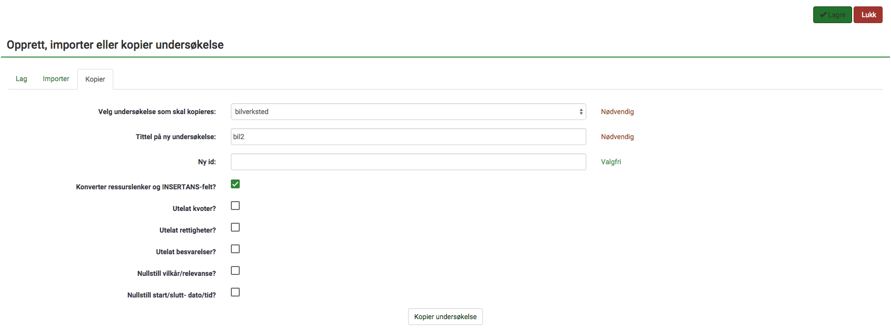 | Description | Make a new survey and choose to copy an existing one. There are Save and Close buttons in upper right corner of the screen. The Save button makes no sense here as there is a Copy button in the bottom of the screen. The Copy button should be where the Save button is. | ||||