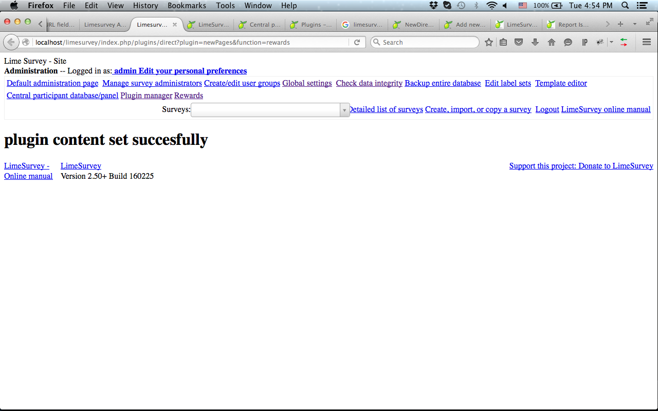 | Complete LimeSurvey version number (& build) | 160225 | ||||