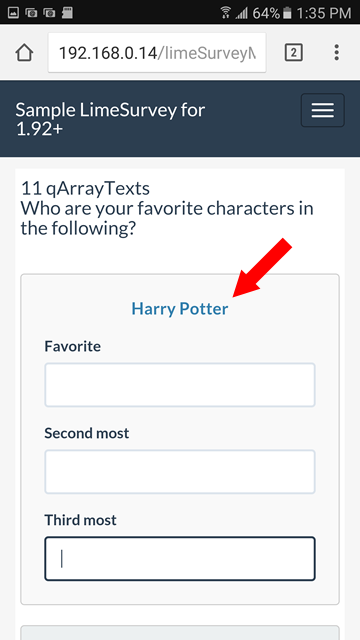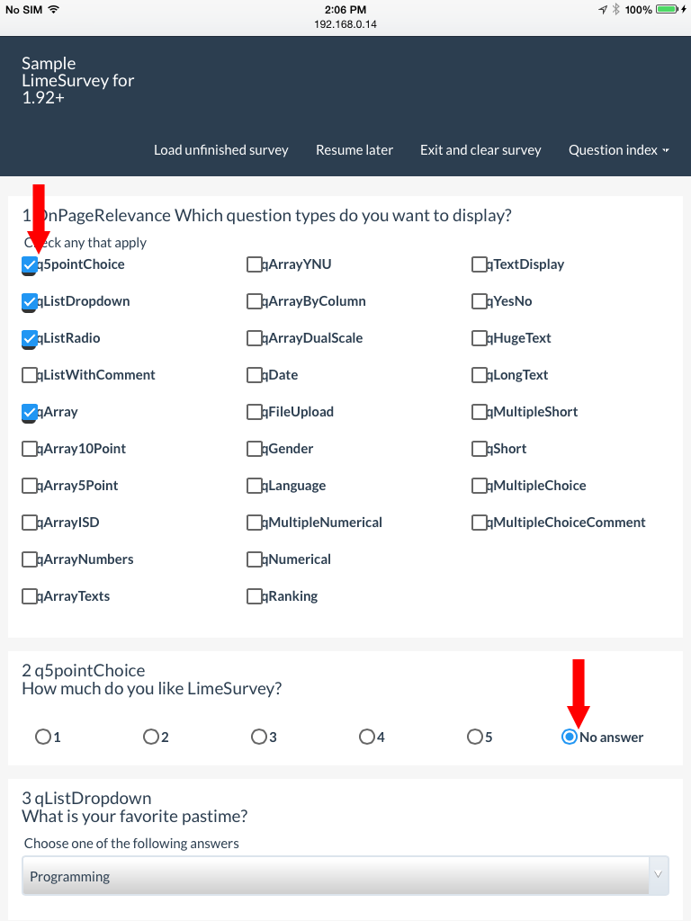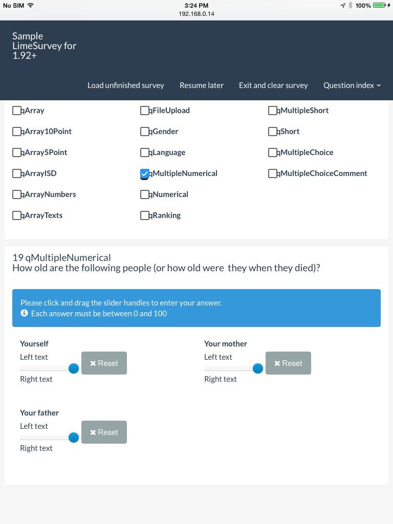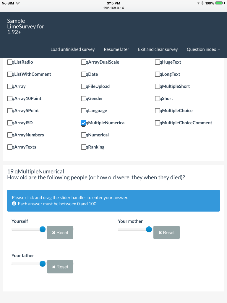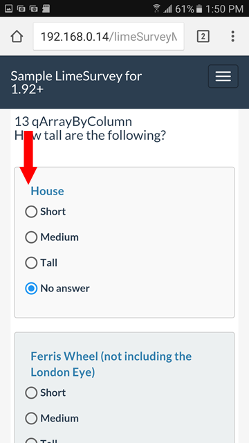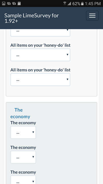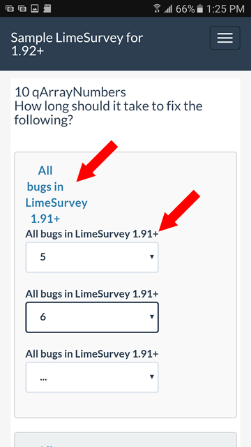 | Additional Information | Olle, please find below a list of issues I found when testing the "Sample LimeSurvey for 1.92+" survey with a phone and an iPad. Devices: