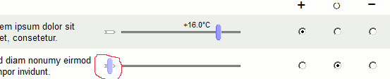 | Description | Slider position outside the value range. Saves reset button and allows to show no answer visually. | ||||