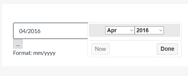 | Description | When a Date/Time question is set to format mm/yyyy, the datepicker pop-up covers all or part of the entry field (depending on the template). An answer can't be cleared out once a date is entered. | ||||