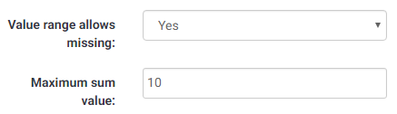 | Description | When hovering over the label in the Advanced settings this is shown: Is no answer (missing) allowed when either 'Equals sum value' or 'Minimum sum value' are set? I would very much like this also to work when 'Maximum sum value is set' | ||||