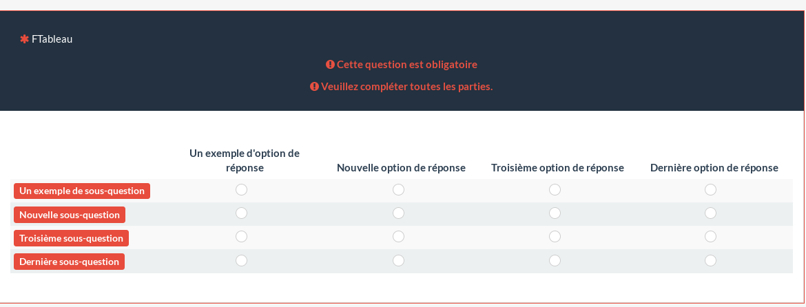 | Additional Information | Think bg-danger is the greatest (http://getbootstrap.com/css/#helper-classes) but fot array line : we can use http://getbootstrap.com/css/#tables danger directly. Screenshot with : | ||||