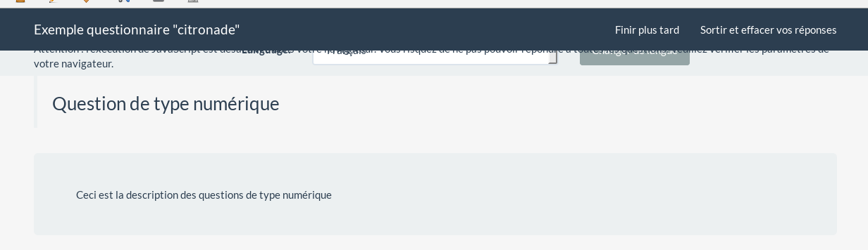 | Description | If you take the survey and javascript is deactivated : you don't see js warning | ||||