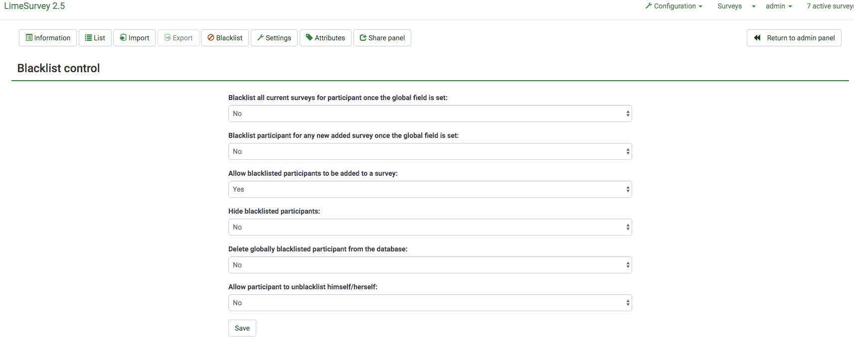 | Complete LimeSurvey version number (& build) | 160430 | ||||