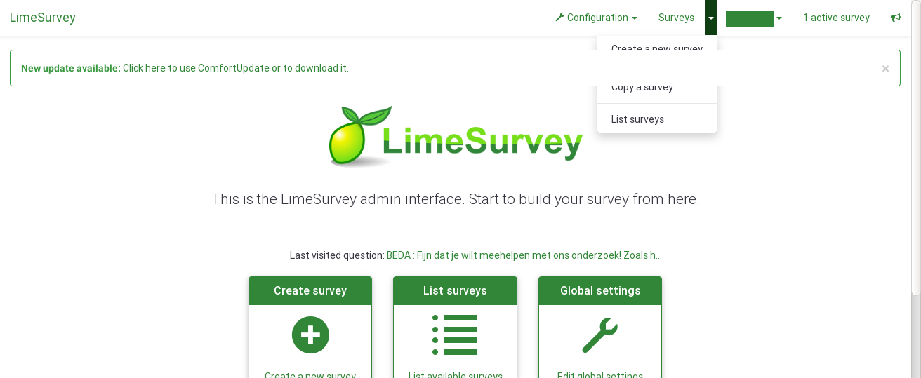 | Complete LimeSurvey version number (& build) | 160425 | ||||
