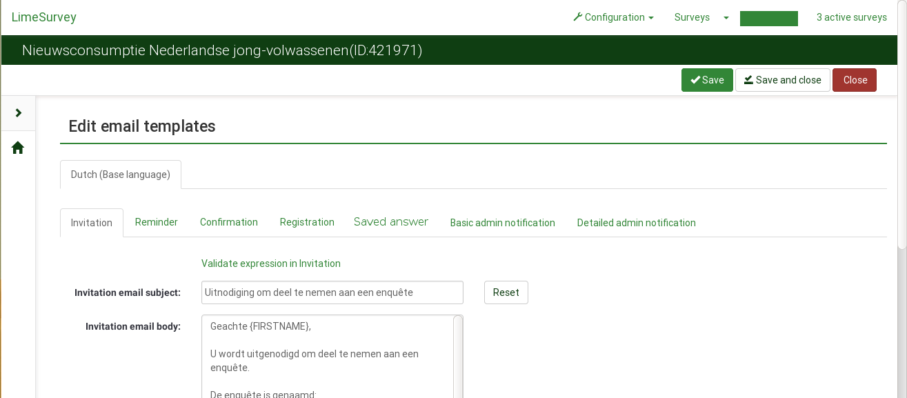 | Summary | 11192: Enable editing of 'Saved survey' email via "Edit email templates" | ||||
