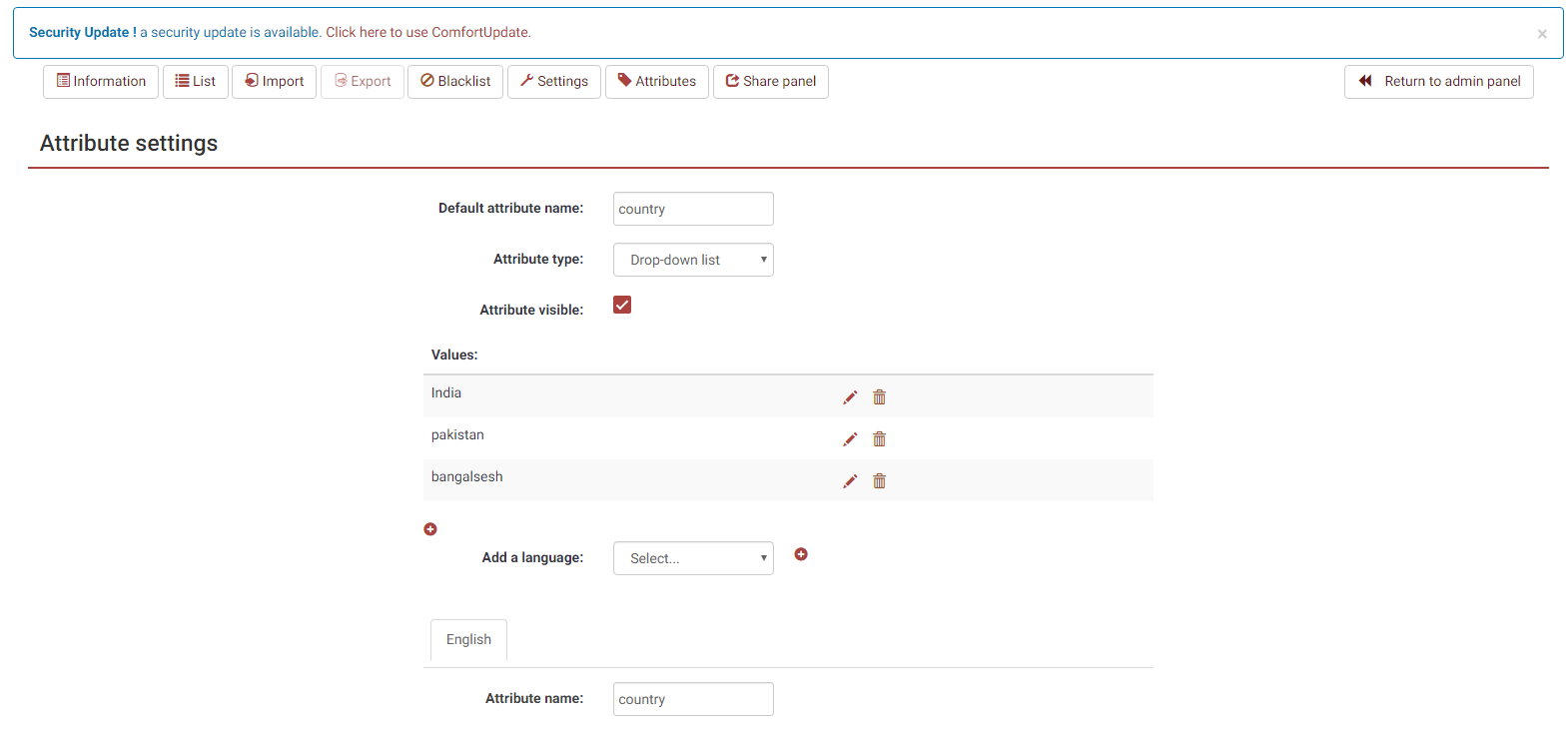This issue is still present in 5.x and also applies to the Additional Attributes screen Steps to reproduce
