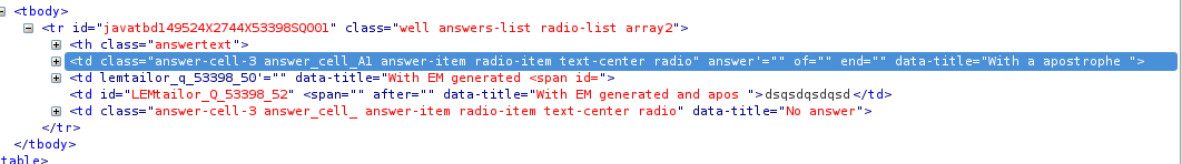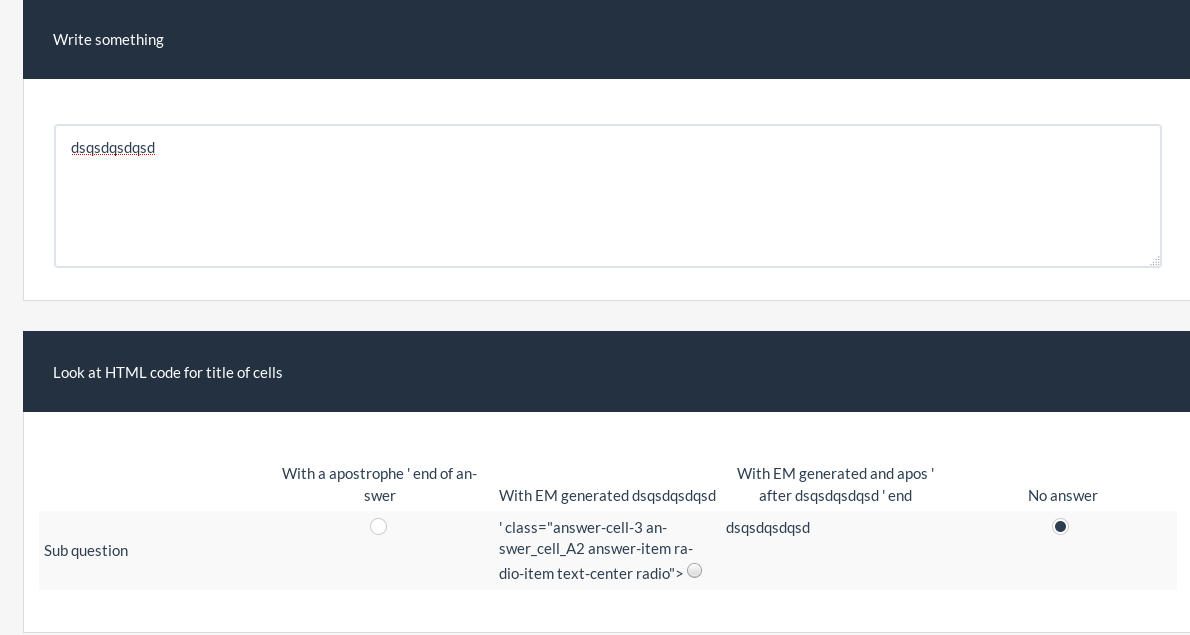 | Description | If you use ' in answer of array : this broke title of cell | ||||