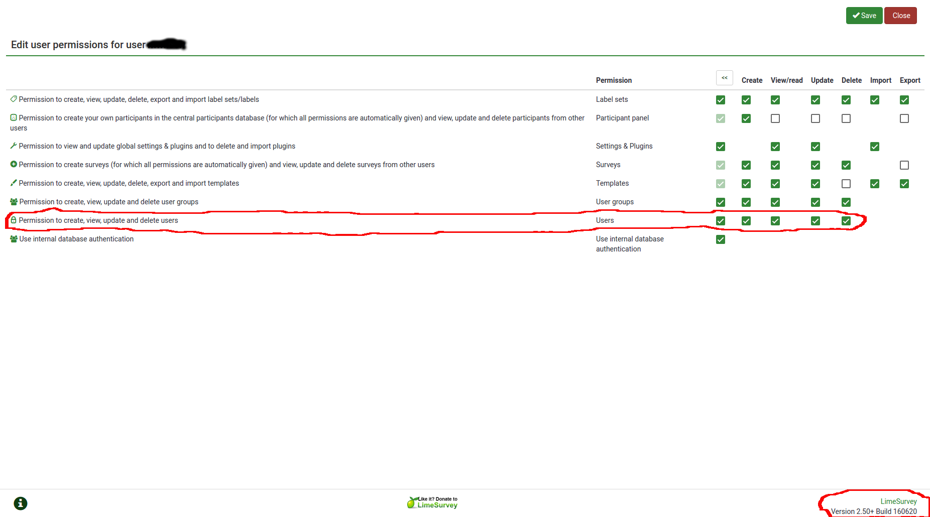 | Description | This happens after updating to build 160620. When login in as a user with all the permissions on the User category, and almost all of the rest (see image attached), he/she is not being able to change the ownership of surveys he/she owns. | ||||