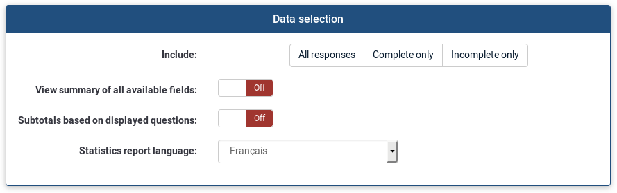 | Description | I would like to have one more option that we have when we export statistics manually. The option I would like to have in Remote fo export_statistics is Subtotals based on displayed questions http://api.limesurvey.org/classes/remotecontrol_handle.html#method_export_statistics | ||||