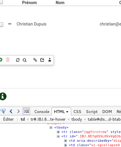 Strange , i have it on a clean install of a 2.50 version : https://github.com/LimeSurvey/LimeSurvey/blob/master/application/models/Participant.php#L134 can produce dot ? Or maybe we don't use everywhere this function ? A question : https://github.com/LimeSurvey/LimeSurvey/blob/master/application/models/Participant.php#L134 produce only id valid caracter ? I didn't realy understand it ;). PS : the data-partcicipantid fix the solution with all caracter. |