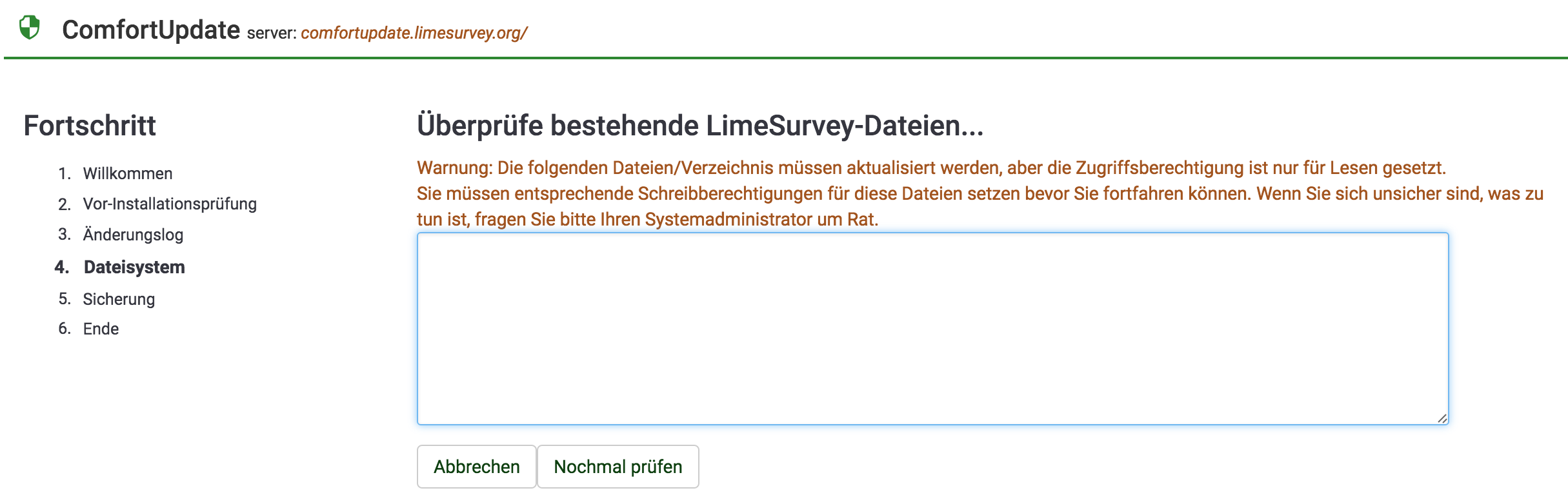| Description | Process stops with hint of write protected directories - but List is empty. | ||||