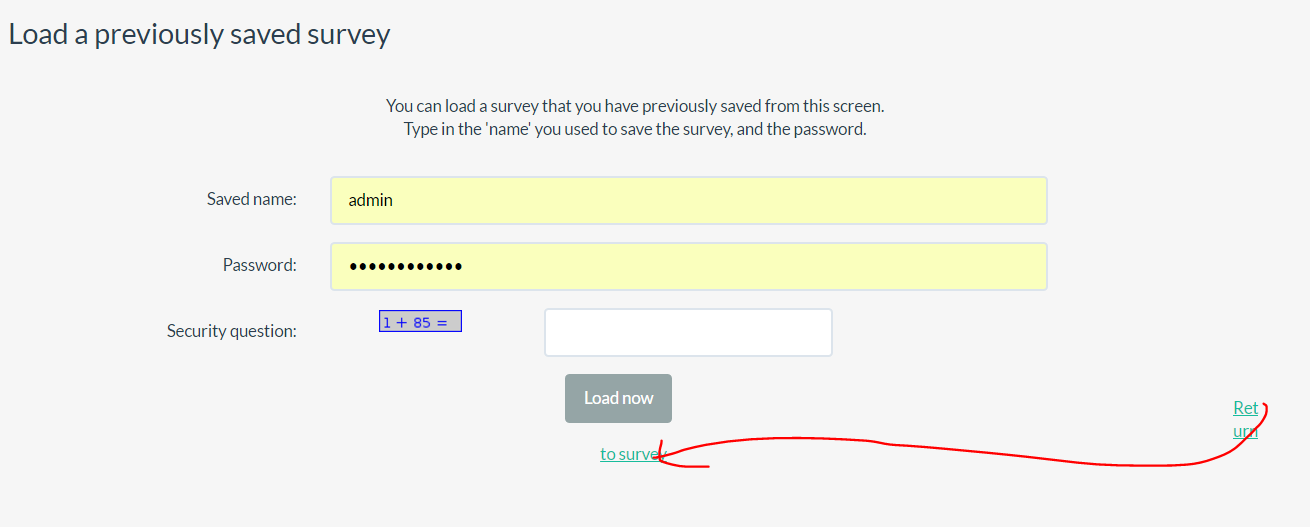 | Description | When using the "Load unfinished survey" feature the "Return to survey" link at the bottom is misaligned, see attached screenshot.