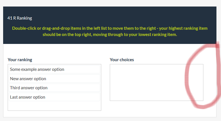 | Description | The ranking question suffers from different styling (border-radius, border-width, border-color) from other inputs. It also has double padding on the right side. Panels are of different height | ||||