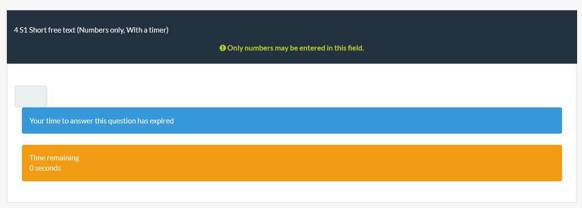 | Description | The timer question (short free text) has a .col-xs-12 class too many: see attached image. I could not find this in the question views. | ||||