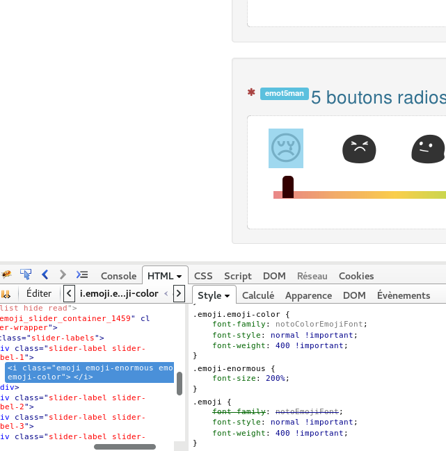 Send 4 screenshot : visualization with font unable, firebug deactivate font-family (default from linux have emoji).