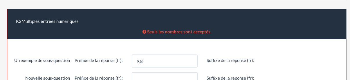 | has duplicate | 11920 | closed | c_schmitz | Decimal input with in "numerical input" and "multiple numerical input" questions always produce error message |