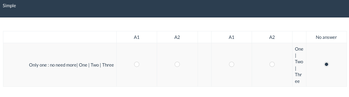 | Steps To Reproduce | Put in a dual scale question type "sub question | one | two | three" and look what you have.