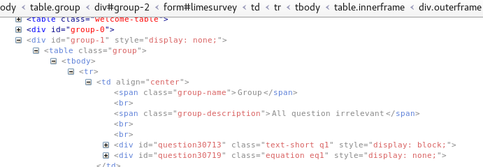 | Description | I a group is hidden in a All in one survey : it's not shown when a question is set 'relevant' inside this group | ||||