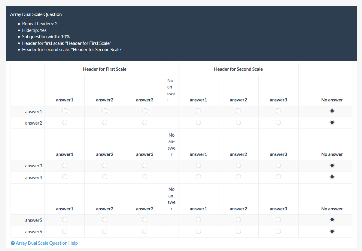 | Summary | 11902: Array dual scale: 2 x no answer | ||||