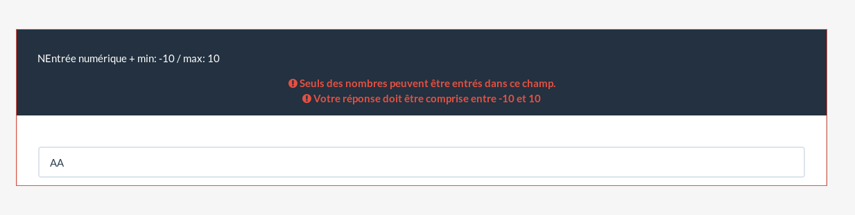 | Description | You can enter anything in numeric question type : no automatic filter is done | ||||