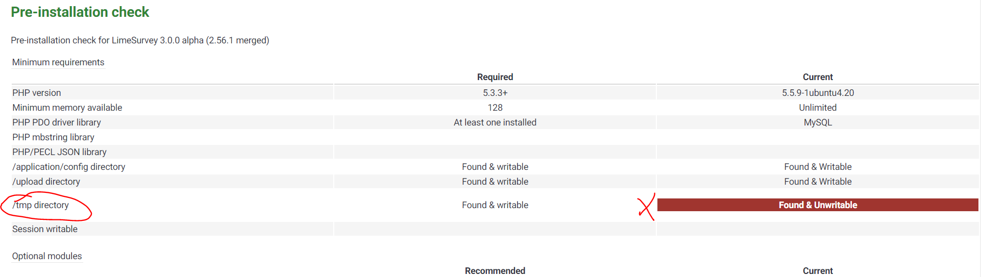 Please : test with 2.5X and update Product Version if it's not OK too. See https://manual.limesurvey.org/Installation#Set_Directory_permissions : subdirectory is already in manual. |