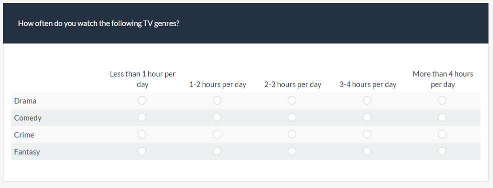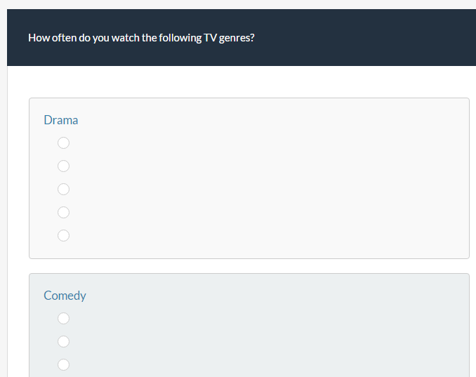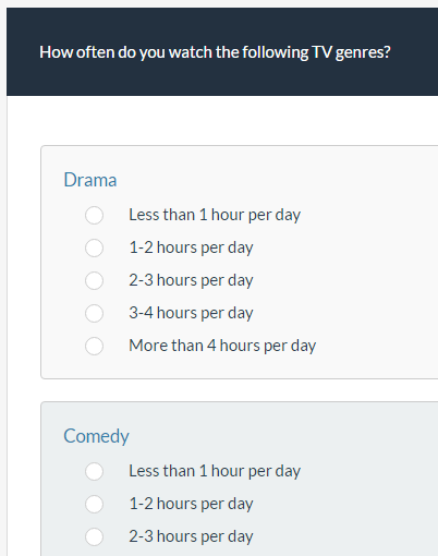| Description | When taking a survey, array questions do not display the answer options if I shrink my browser window to width=799. However, the answer options do display again if I continue to shrink my window to width=767 and smaller. | ||||