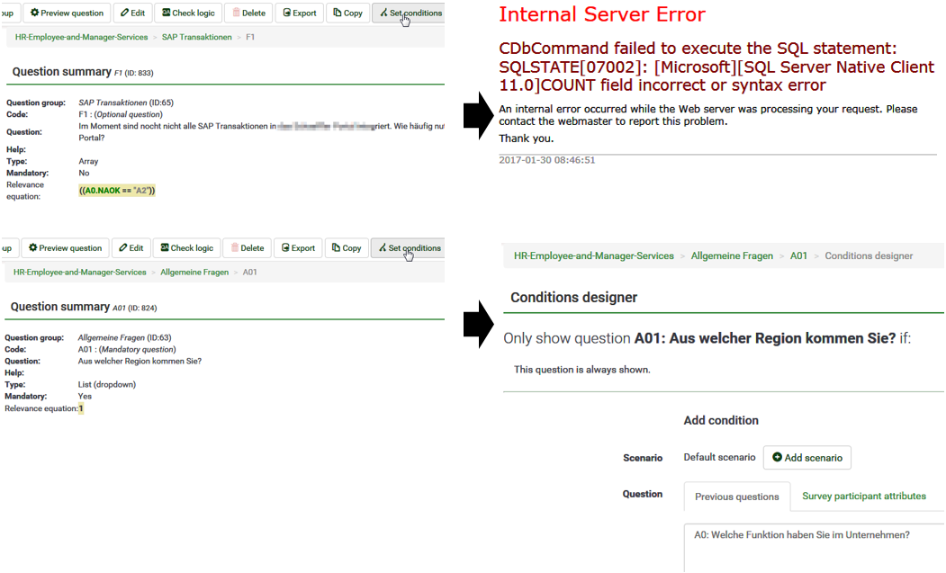 | Summary | 12055: Error when setting conditions on questions | ||||