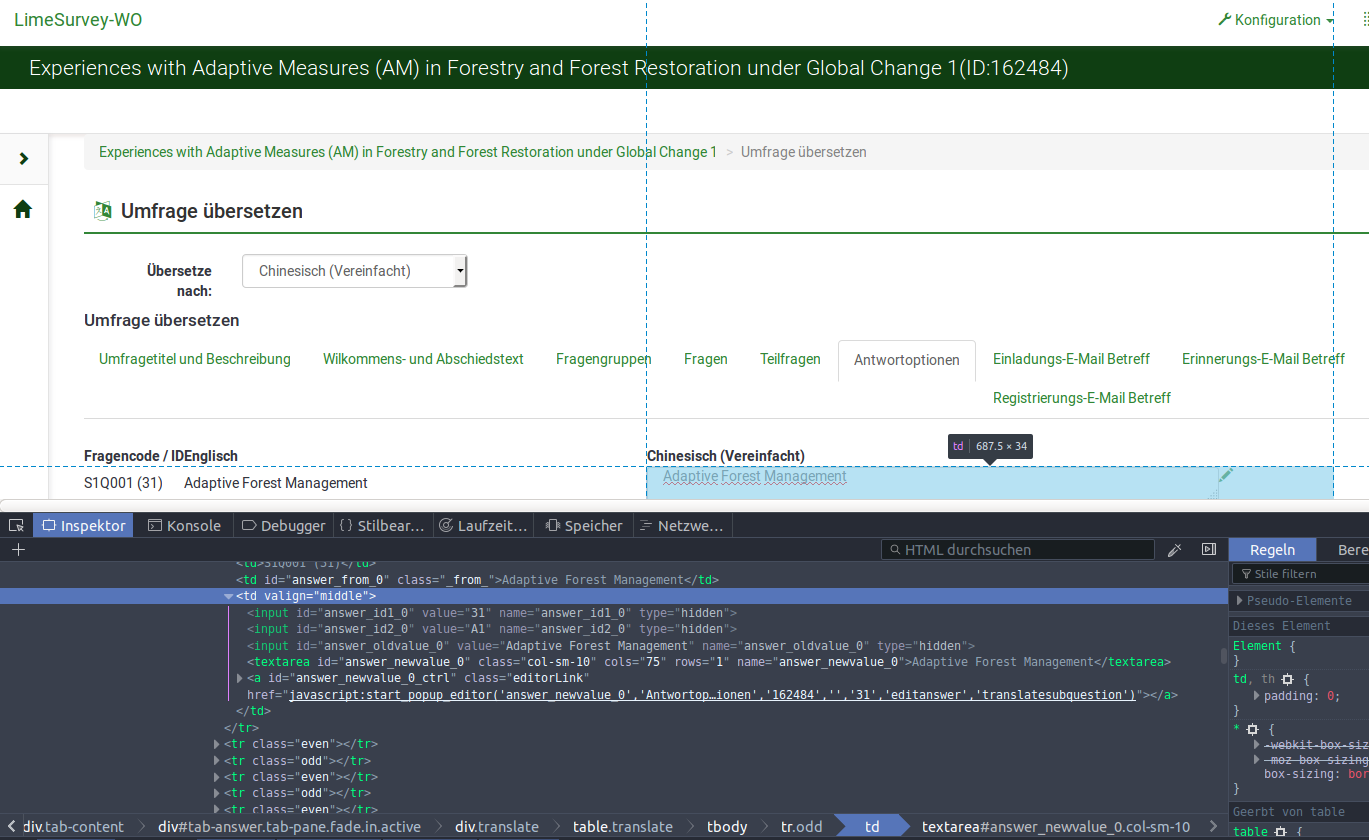 | Description | Limesurvey Version 2.59.1+170116 On using quick translate all is fine. But if i update some content on tab "answer option" the error 'The value for the column "scale_id" is not supplied when querying the table "lime_answers".' occur. | ||||